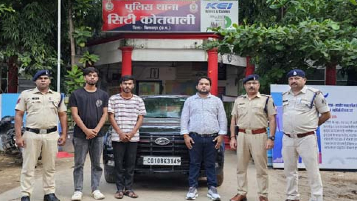 जसपाल सिंह धिरही निवासी चौहाधामा मस्तुरी जिला बिलासपुर। शिवेश सिंह,निवासी देवरीखुर्द बिलासपुर। प्रियांशु बकसेल ,थाना सिरगिट्टी क्षेत्र बिलासपुर।इन युवकों के खिलाफ मोटर व्हीकल एक्ट की धारा 184, 112 / 183 (1,A) के तहत चालानी कार्यवाही कर 3000 रुपये का जुर्माना लगाया है और BNSS की धारा 126, 135(3) के तहत मामला दर्ज किया है । पुलिस ने युवकों को गिरफ्तार कर उनकी कार को जब्त कर लिया।