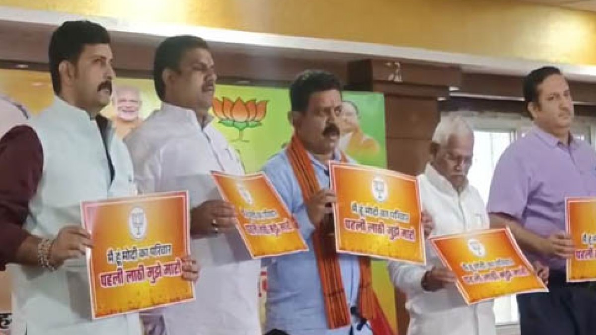 नेता प्रतिपक्ष डॉ. चरणदास महंत के बयान के खिलाफ बीजेपी ने पोस्टर जारी करके नया नारा दिया है। इस पोस्टर के जरिए कहा गया है कि, हम सब मोदी का परिवार है, हिम्मत है तो हमें मारकर दिखाएं