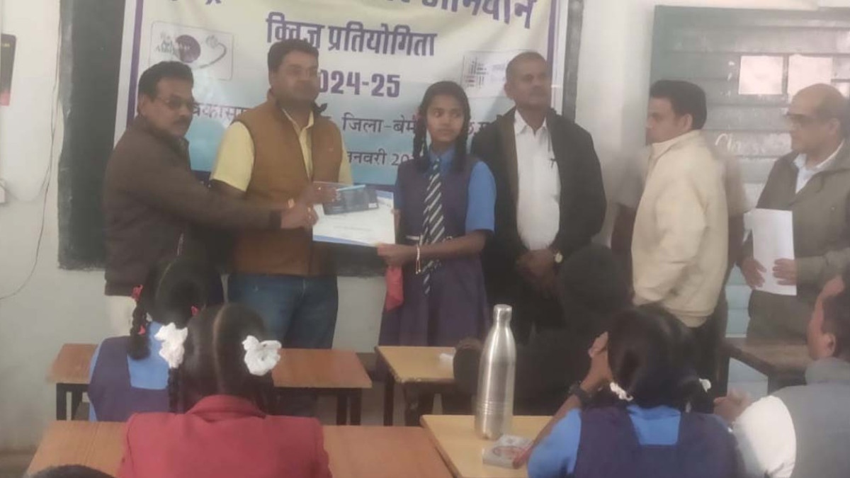 बेमेतरा जिले के शासकीय कन्या उच्चतर माध्यमिक शाला साजा में विकासखण्ड स्तरीय क्विज़ प्रतियोगिता का आयोजन किया गया। बीजा की छात्रा संध्या ने प्रथम स्थान प्राप्त किया।