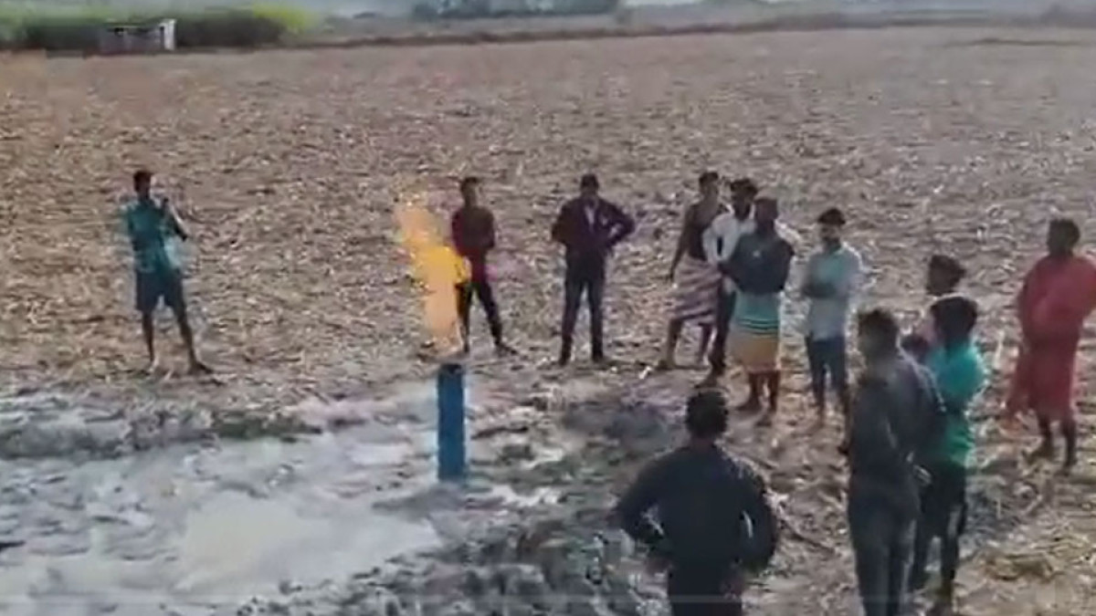 बोरवेल ने उगली आग : खुदाई पूरी होने के बाद उठी तेज लपटें, देखिए वीडियो