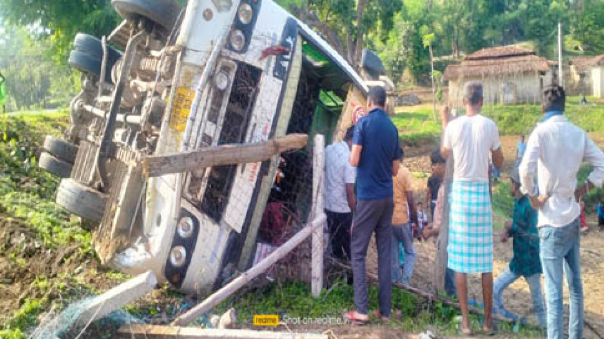यात्रियों से भरी बस पलटी : करीब 30 यात्री सवार थे, 3 को आई चोट