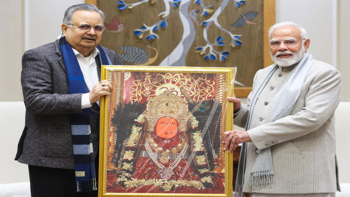 दिल्ली प्रवास के दौरान माननीय प्रधानमंत्री श्री @narendramodi जी से आत्मीय भेंट कर उन्हें डोंगरगढ़ की मां बम्लेश्वरी जी का छायाचित्र भेंट किया।