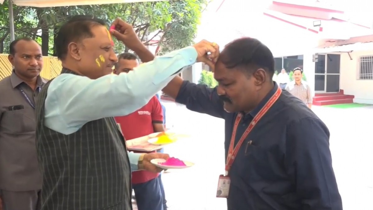 सीएम साय ने खेली होली : जशपुर निकलने से सुरक्षाकर्मी और स्टाफ के साथ खेली होली, बोले- आप मेरा परिवार