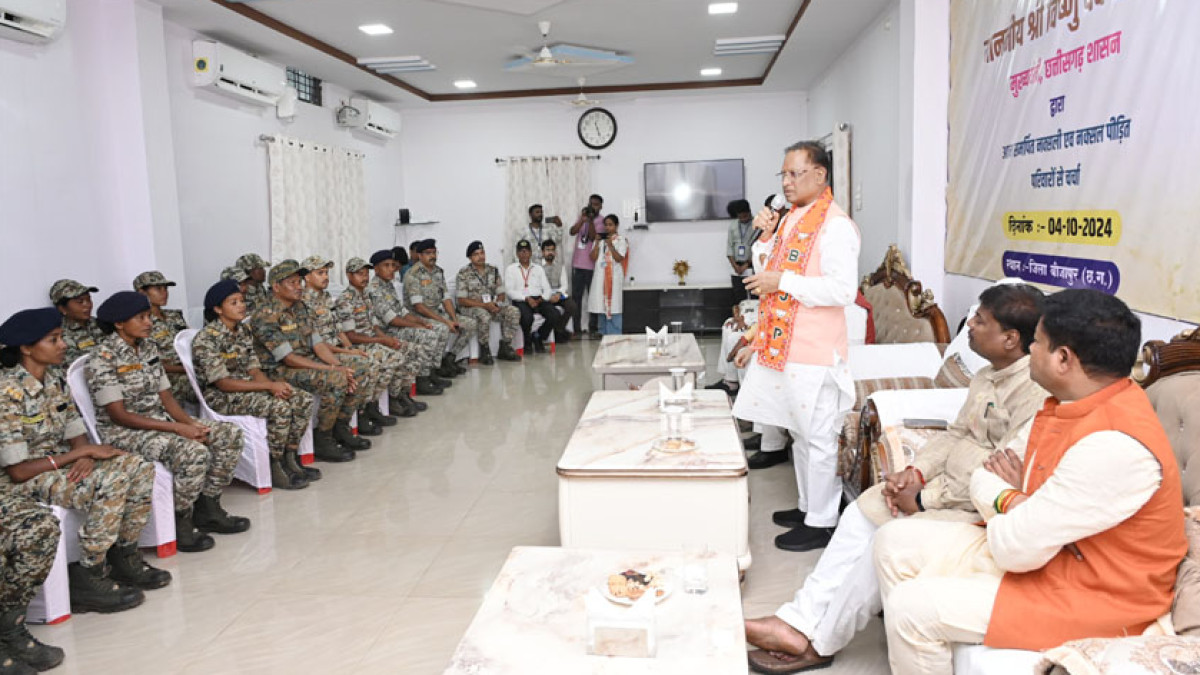 छत्तीसगढ़ के मुख्यमंत्री विष्णुदेव साय ने शुक्रवार को बीजापुर में सरकार की पुनर्वास नीति का लाभ उठाने वाले समर्पित नक्सलियों और सुरक्षाबलों के जवानों से मुलाकात की।