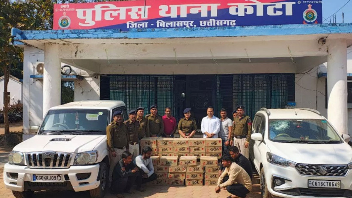 मिली जानकारी के अनुसार, पुलिस और एसीसीयू की टीम ने कोटा-बिलासपुर मुख्य मार्ग पर चेकिंग के दौरान दो संदिग्ध वाहन स्कॉरपियो और मारुति अर्टिगा को रोका। तलाशी लेने पर दोनों गाड़ियों से 18-16 पेटी गोवा व्हिस्की बरामद हुई। शराब की पेटियां मध्यप्रदेश के भालूमाड़ा से तस्करी कर लाई जा रही थी। पुलिस ने दोनों वाहन और चार मोबाइल फोन जब्त कर आरोपियों को गिरफ्तार कर लिया।