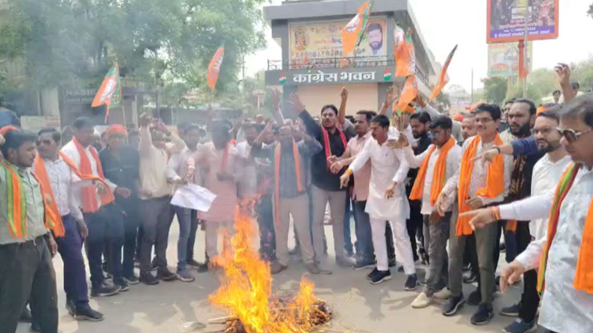 कांग्रेस कार्यालय का घेराव : भाजपाइयों ने राहुल और सोनिया गांधी का किया पुतला दहन, भ्रष्टाचार का आरोप लगाते हुए जमकर की नारेबाजी
