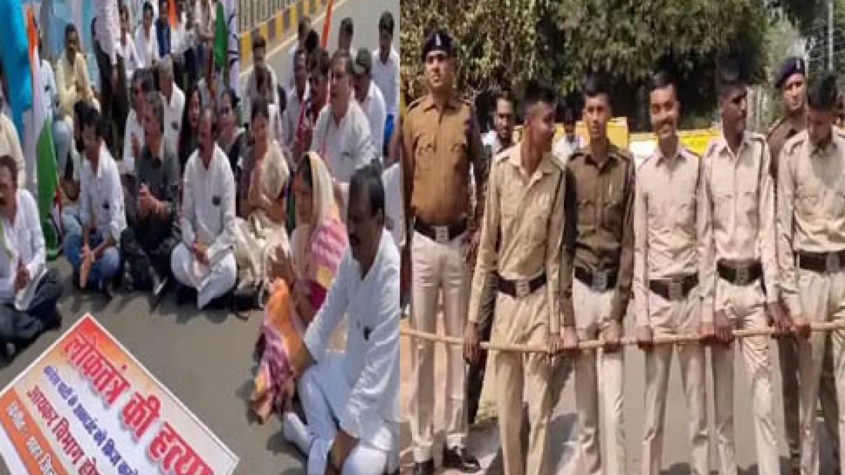 बता दें, पुलिस के रोक लगाने के बाद बीच सड़क पर कांग्रेस कार्यकर्ता बैठ गए हैं और रघुपति राघव राजा राम, पतित पावन सीता राम भजन गाते हुए दिखाई दे रहे हैं।