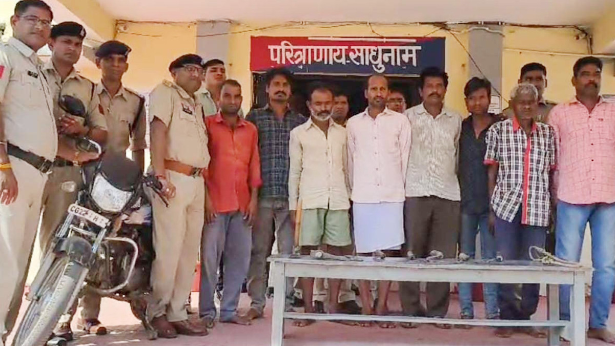मुंगेली जिले की पुलिस ने बछड़े को मारकर बेचने की प्लानिंग करने वाले 8 आरोपियों को गिरफ्तार किया है। उसके पास से रखे हथियार को जब्त किया है।