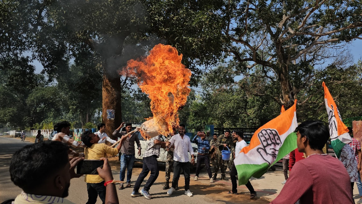 दंतेवाड़ा जिले में कांग्रेस ने वन मंत्री केदार कश्यप का पुतला दहन किया है। कांग्रेस का आरोप है कि, जिस वन मंदिर और हर्बल गार्डन को बनाने के लिए वन विभाग ने लगभग साढ़े 4 करोड़ रुपये लगा दिये हैं।