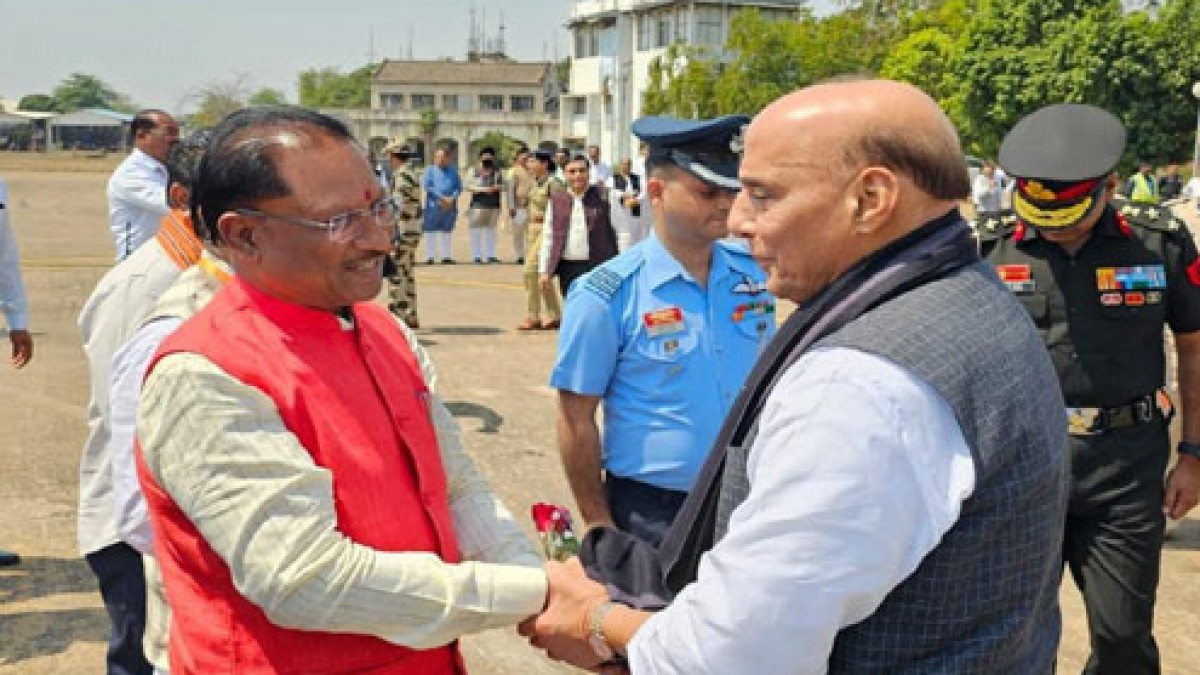 रक्षामंत्री पहुंचे रायपुर : एयरपोर्ट पर सीएम साय ने किया आत्मीय स्वागत, साइंस कॉलेज मैदान के लिए रवाना