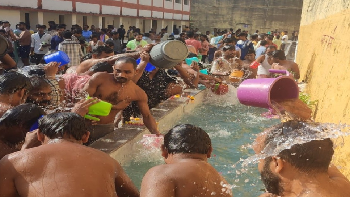 धमतरी जेल में कैदियों ने किया गंगाजल से स्नान : पूजन- अर्चन और मंत्रोच्चार के साथ 239 बंदियों ने किया शाही स्नान