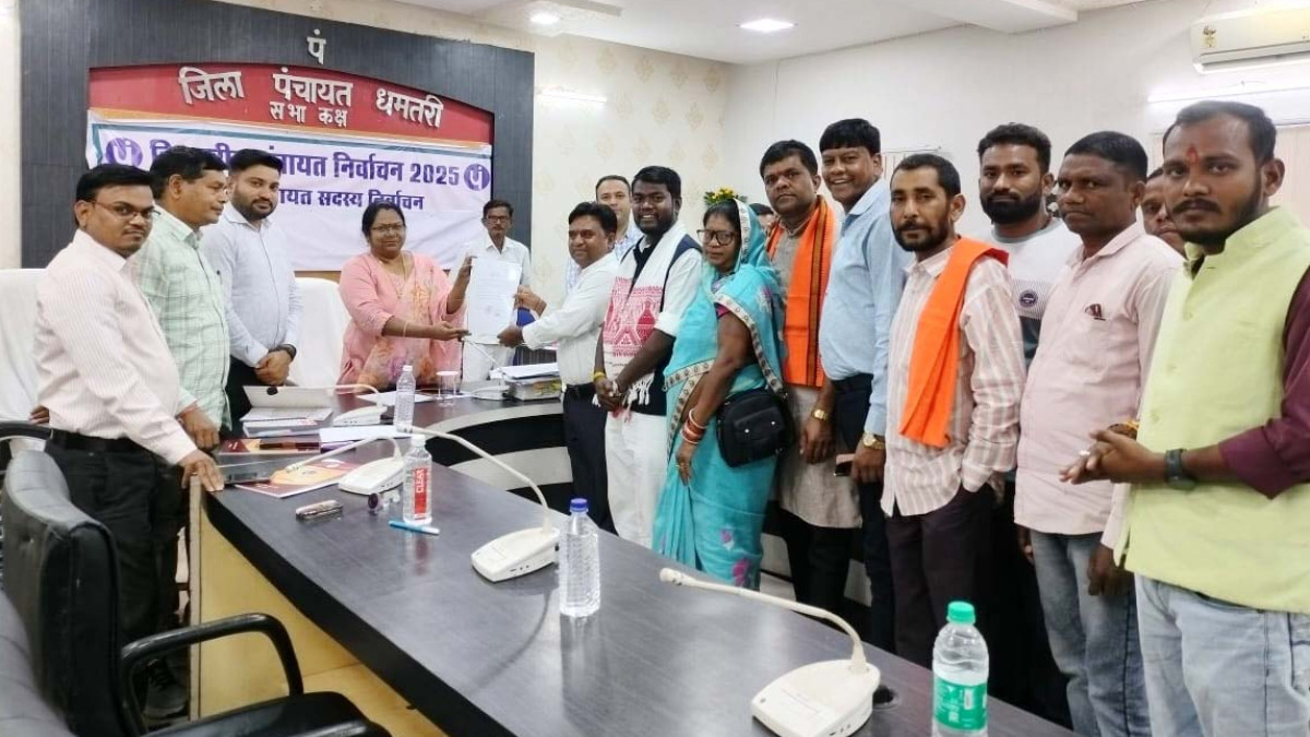 धमतरी जिला पंचायत कार्यालय में सोमवार को भाजपा प्रत्याशियों को निर्वाचन प्रमाण पत्र दिया गया। यह निर्वाचन प्रमाण पत्र जिला निर्वाचन अधिकारी प्रीति दुर्गम ने दिया।