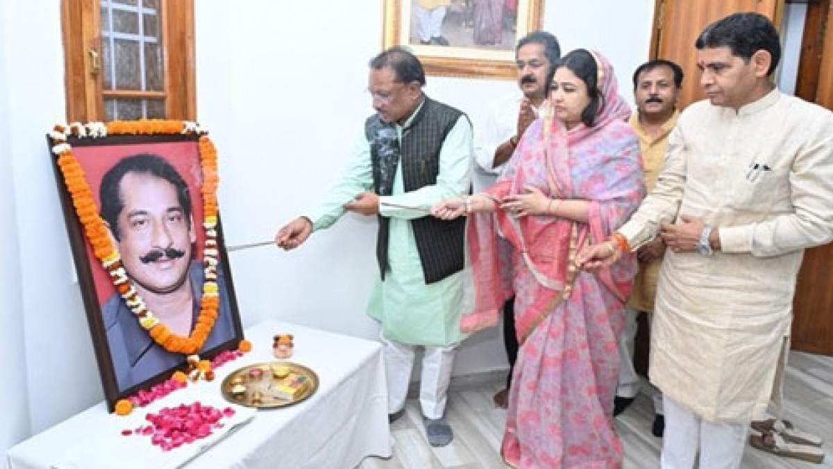 मुख्यमंत्री विष्णु देव साय ने पूर्व सांसद और केन्द्रीय मंत्री स्वर्गीय दिलीप सिंह जूदेव की जयंती पर उनके छायाचित्र पर पुष्प अर्पित कर नमन किया।