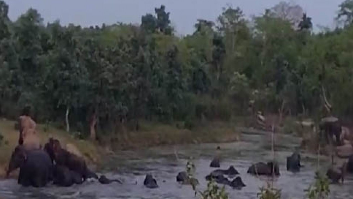बता दें, 2 घंटे तक पानी में हाथियों का झुंड मस्ती करता रहा है। नाले में नहाकर हाथियों का दल सतपुरिया के जंगल में लौट गया है। तीन महीने से क्षेत्र में 25 हाथियों का दल मौजूद है। यह पूरा मामला तपकरा वन परिक्षेत्र के महुआडीह गांव का है।