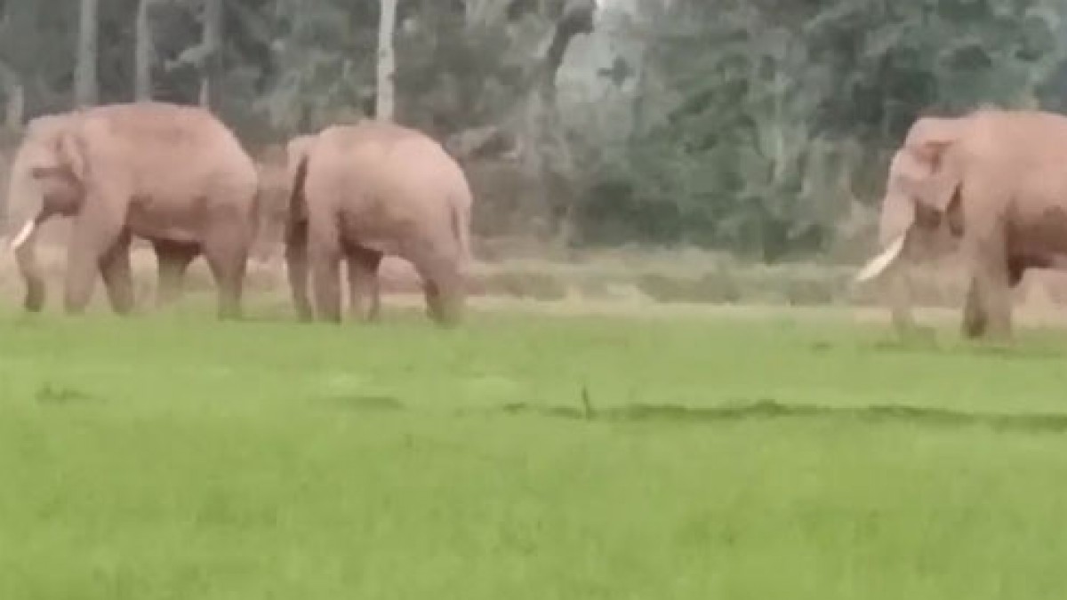 हाथियों का उत्पात : यहां विचरण कर रहा हाथियों का बड़ा दल, धान की फसलों को किया बर्बाद