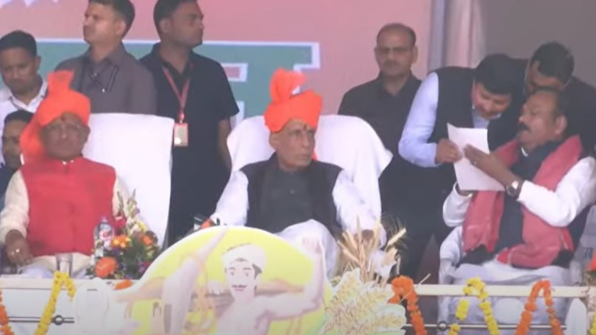 रायपुर। देश के रक्षा मंत्री राजनाथ सिंह राजधानी रायपुर के साइंस कॉलेज मैदान पहुंच चुके हैं। जहां वे किसानों के सम्मेलन में शामिल हो रहे हैं। उनके साथ मंच पर मुख्यमंत्री विष्णु देव साय, उप मुख्यमंत्री विजय शर्मा, डिप्टी सीएम अरुण साव, भाजपा प्रदेश अध्यक्ष किरण देव भी, मंत्री रामविचार नेताम, केदार कश्यप, श्यामबिहारी जायसवाल भी मौजूद हैं।
