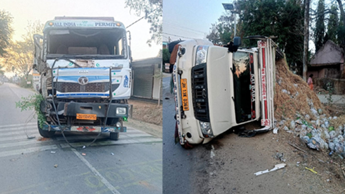 पिकअप और ट्रक में जोरदार भिड़ंत : वाहनों के उड़े परखच्चे, पिकअप पर लोड फल बर्बाद