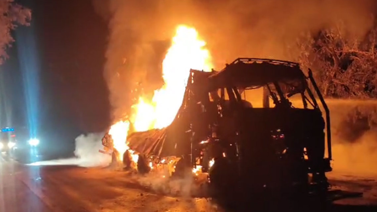 चलती ट्रक में लगी भीषण आग : बाल-बाल बचे चालक-परिचालक, ट्रक जलकर खाक