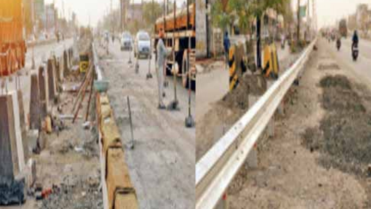 यहां भी रोड डिवाइडर के साथ सर्विस रोड