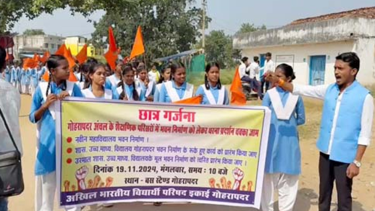स्कूल-कॉलेज भवन की मांग : एबीवीपी के बैनर तले विद्यार्थियों ने किया हाईवे जाम