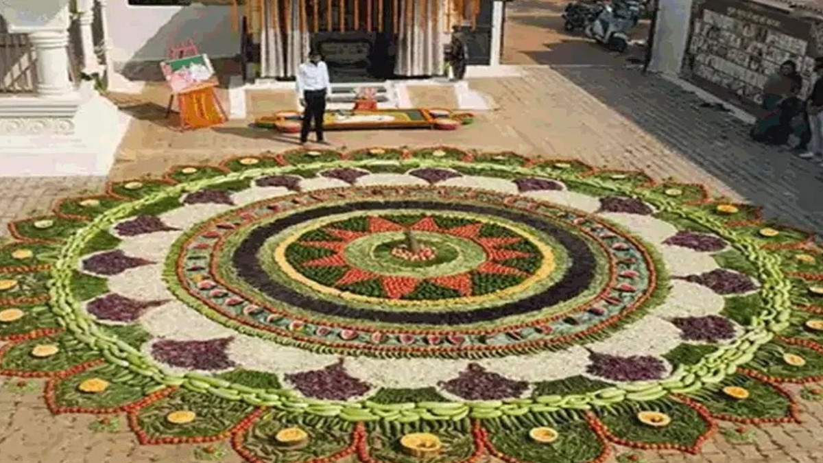 गो सेवक ने अपने जन्मदिन पर गायों को दावत दी। मनोहर गौशाला में 2000 किलो फल-सब्जियों को रंगोली की तरह सजाया और फिर गायों को खिलाया।