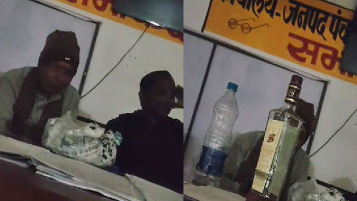 सरकारी दफ्तर को बना दिया मयखाना : क्लर्क ने प्रत्याशियों के साथ छलकाया जाम, वीडियो सोशल मीडिया में हुआ वायरल