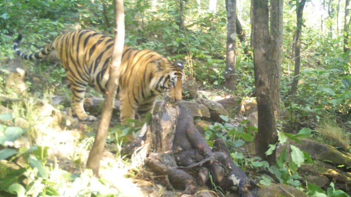 कोरिया जिले में बाघ का खौफ : गांव के करीब आने से ग्रामीणों में डर, दो मवेशियों का कर चुका है शिकार