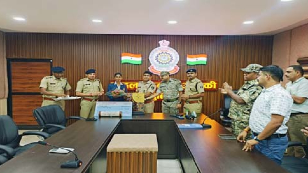 सम्मान समारोह : शहीद पंकज विक्रम सम्मान हासिल करने पर हॉकी प्लेयर आरक्षक रुपाली कश्यप का किया सम्मान