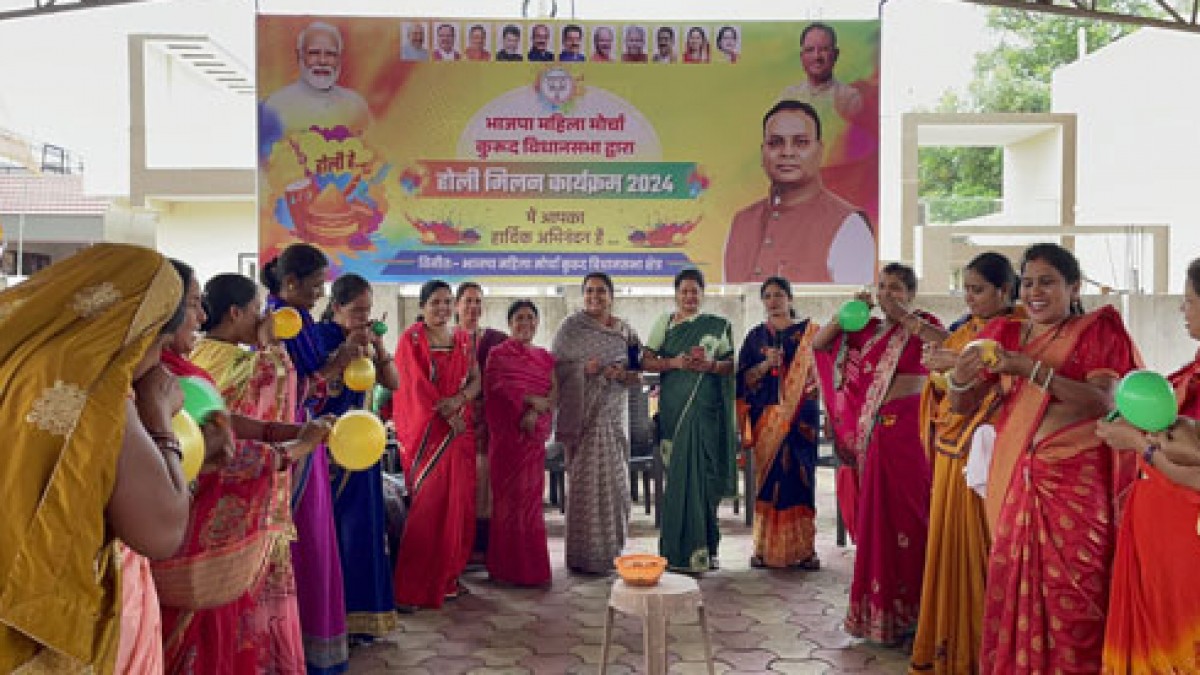 बीजेपी महिला मोर्चा का होली मिलन कार्यक्रम: रंगपंचमी पर जमकर उड़ाया गुलाल, देश का नेतृत्व फिर से मोदी को देने का लिया संकल्प