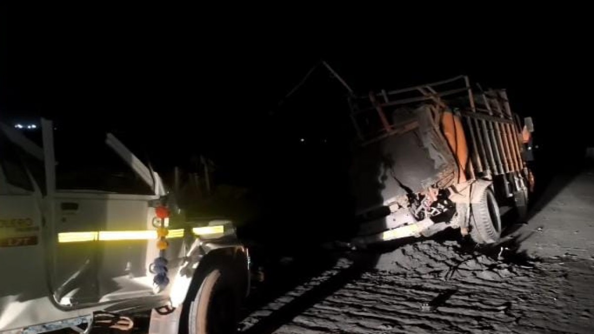 सड़क किनारे खड़ी माजदा में जा घुसा पिकअप वाहन