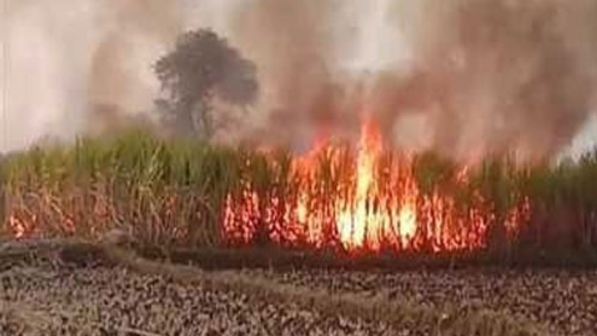 गन्ने के खेत में लगी भीषण आग : बुझाने की कोशिश में बुरी तरह से झुलसा किसान, इलाज जारी