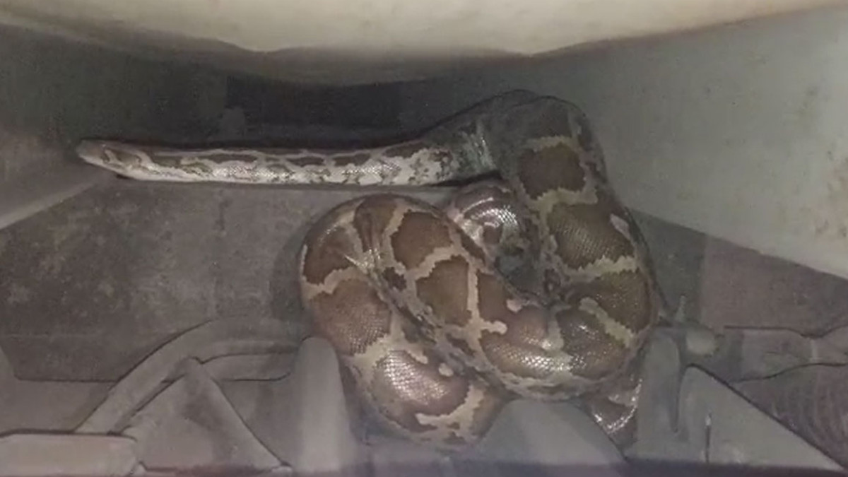 ट्रक में घुसा बड़ा अजगर : नो एंट्री में खड़ा था ट्रक, राहगीर बनाने लगे VIDEO