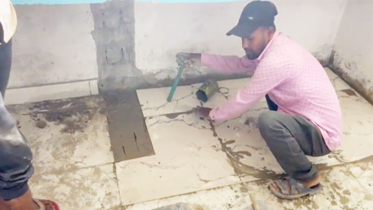 खबर का असर : 3 माह में जर्जर हुए करोड़ों की लागत से बने स्कूल की मरम्मत का काम शुरू