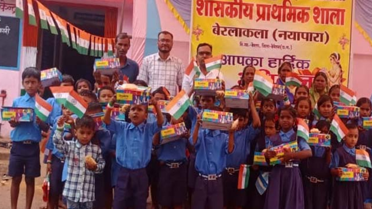 छन्नू खंडेलवाल-मांढर।स्वतंत्रता दिवस के अवसर पर बेमेतरा जिले के बेरला ब्लॉक के विद्यालय बेरला कला नयापारा संकुल केंद्र कंडरका में, एक अनूठा आयोजन हुआ। शिक्षक खोमल लाल साहू ने अपने वेतन से विद्यालय की 34 विद्यार्थियों को स्कूल मोजे-जूते और टाई वितरित किए। इस पहल से बच्चों में खुशी की लहर दौड़ गई और शिक्षक के इस कदम को पूरे क्षेत्र में सराहा जा रहा है।