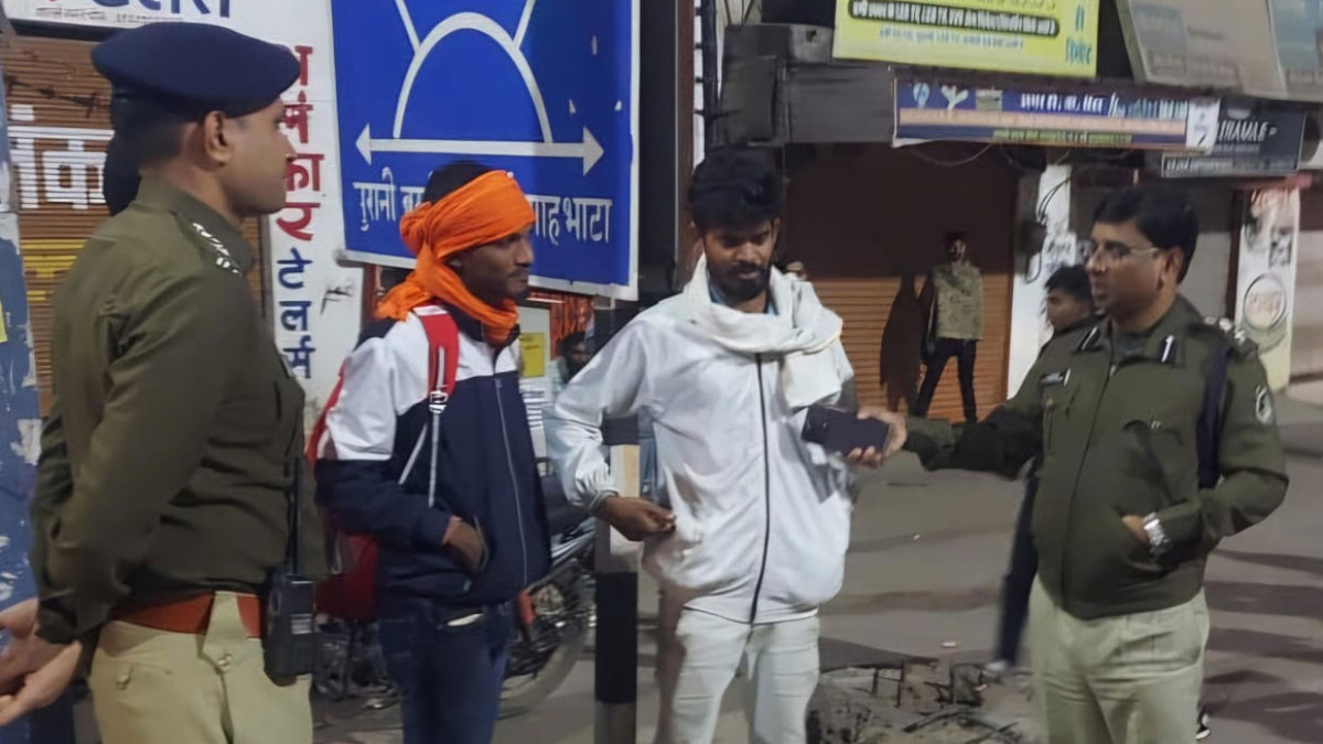पुलिस की चेकिंग के दौरान कई लोग फंसे।