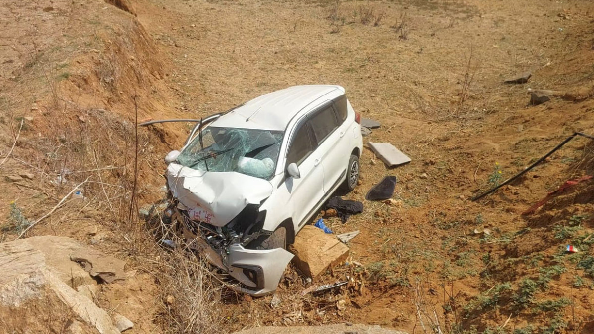 अनियंत्रित होकर खाई में जा गिरी कार : बड़ी मात्रा में गांजा लेकर जा रही थी, घायल आरोपी का इलाज जारी, साथी फरार