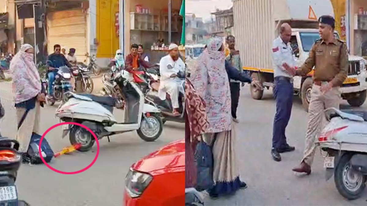 बीच सड़क पर हंगामा : नो पार्किंग जोन में खड़ी स्कूटी पर पुलिस ने लगाया लॉक, बिफरी महिला ने कर डाला ट्रैफिक जाम