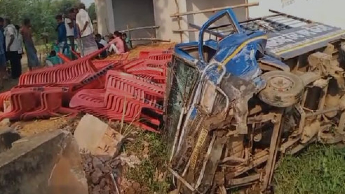 कवर्धा में एक और हादसा : टेंट हाउस का सामान लेकर जा रही गाड़ी पलटी, 6 घायल
