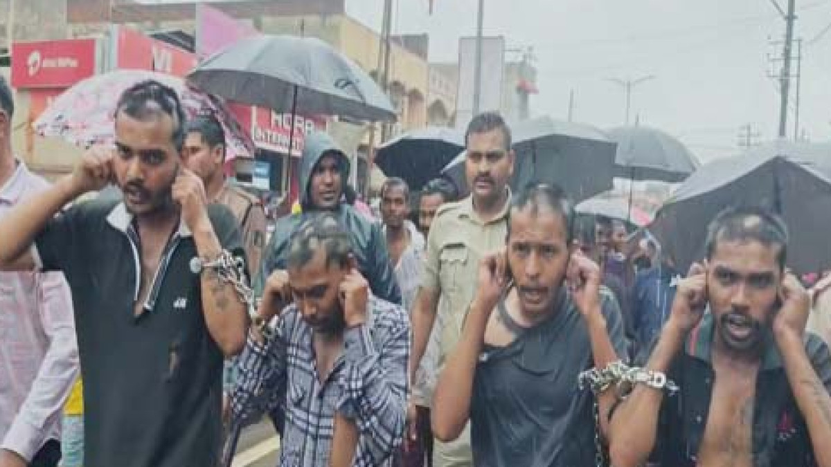 युवक का अपहरण कर पिटाई : बेसबाल से पीटकर मरा समझकर छोड़ गए थे, चार बदमाश पकड़े गए, पुलिस ने निकाला जुलूस