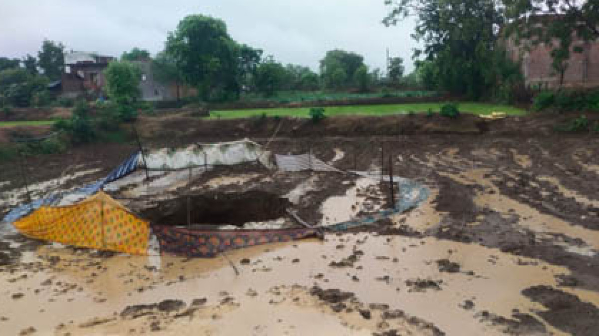 खेत की धंस गई जमीन : अचानक बड़ा गड्ढा हुआ, अनहोनी की आशंका से किसान भयभीत