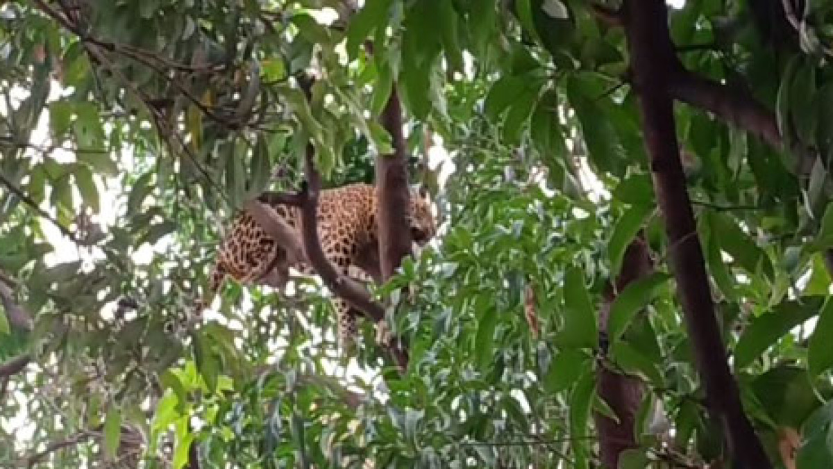 शहर में आ धमका तेंदुआ : आम के पेड़ पर चढ़ा, रेस्क्यू के लिए पहुंचा वन अमला