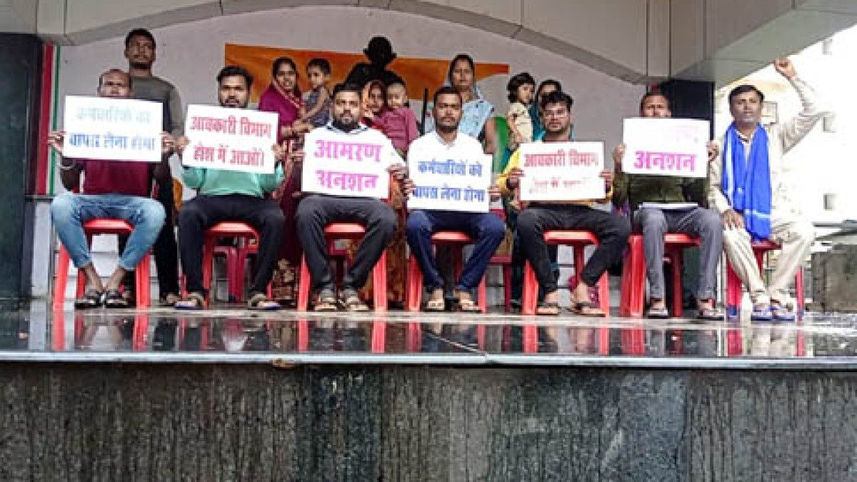 शराब दुकान के कर्मचारियों ने अपनी पत्नी और बच्चों के साथ अनशन शुरू कर दिया है। जानिए पूरा मामला