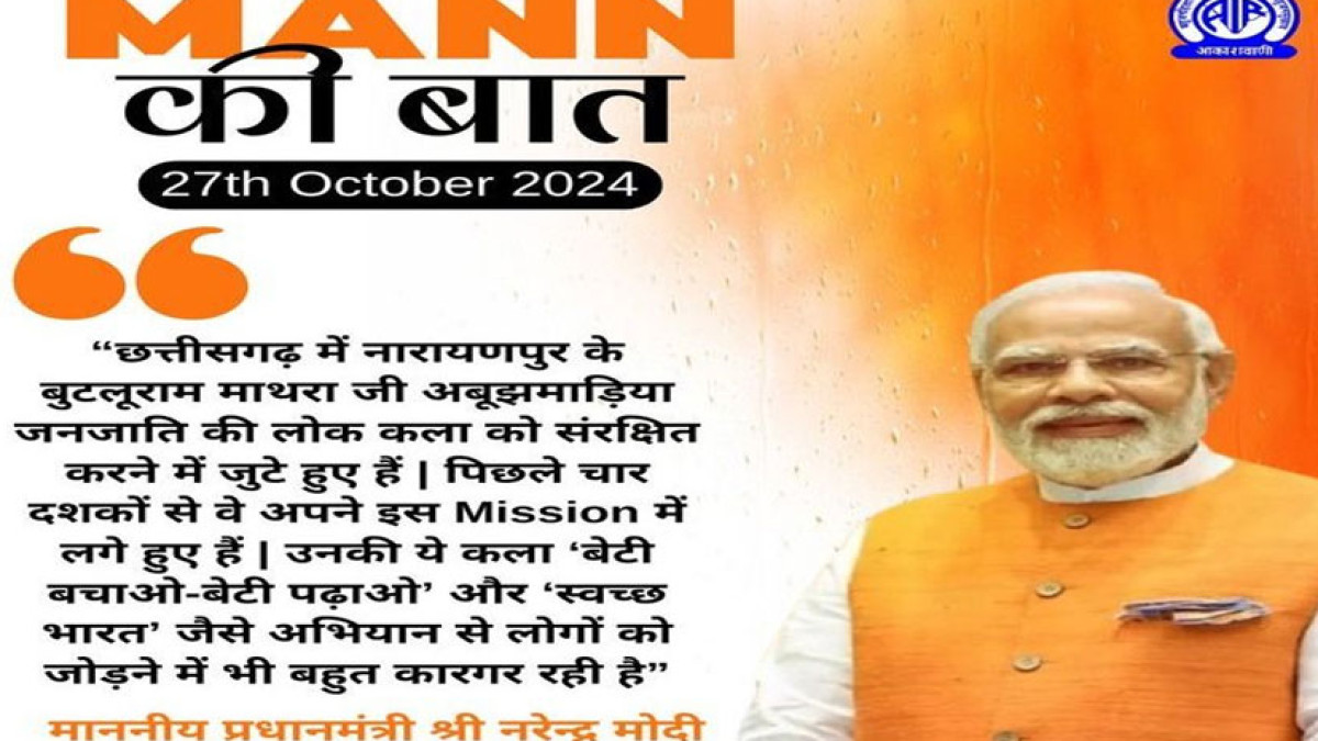 पीएम मोदी ने मन की बात में नारायणपुर के लोक कला के संरक्षण में जुटे बुटलूराम माथरा की सराहना की है। पीएम ने कहा कि, उनकी लगन आने वाली पीढ़ियों के लिए प्रेरणास्रोत है।