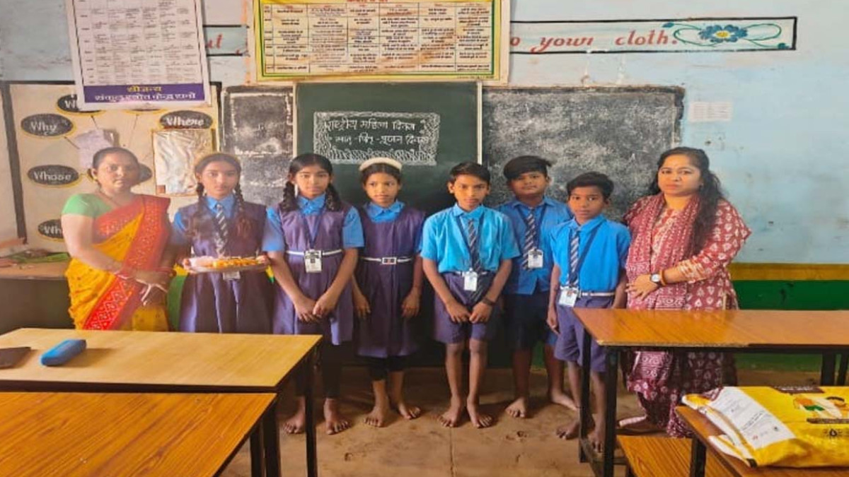 स्कूल में आयोजन : बच्चों ने राष्ट्रीय महिला दिवस के साथ ही मातृ-पितृ पूजन दिवस भी मनाया