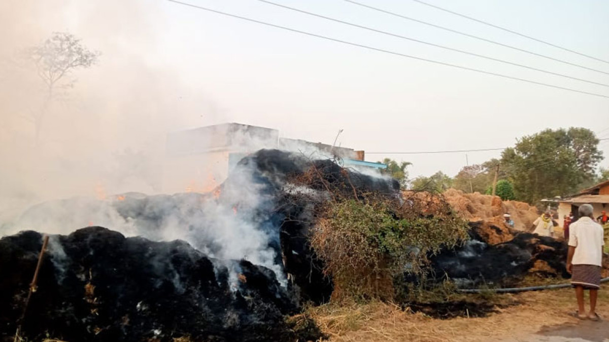 किसान की सालभर की मेहनत बर्बाद : आग लगने से धान जलकर ख़ाक, पीड़ित किसान ने शासन से की मुवावजे की मांग