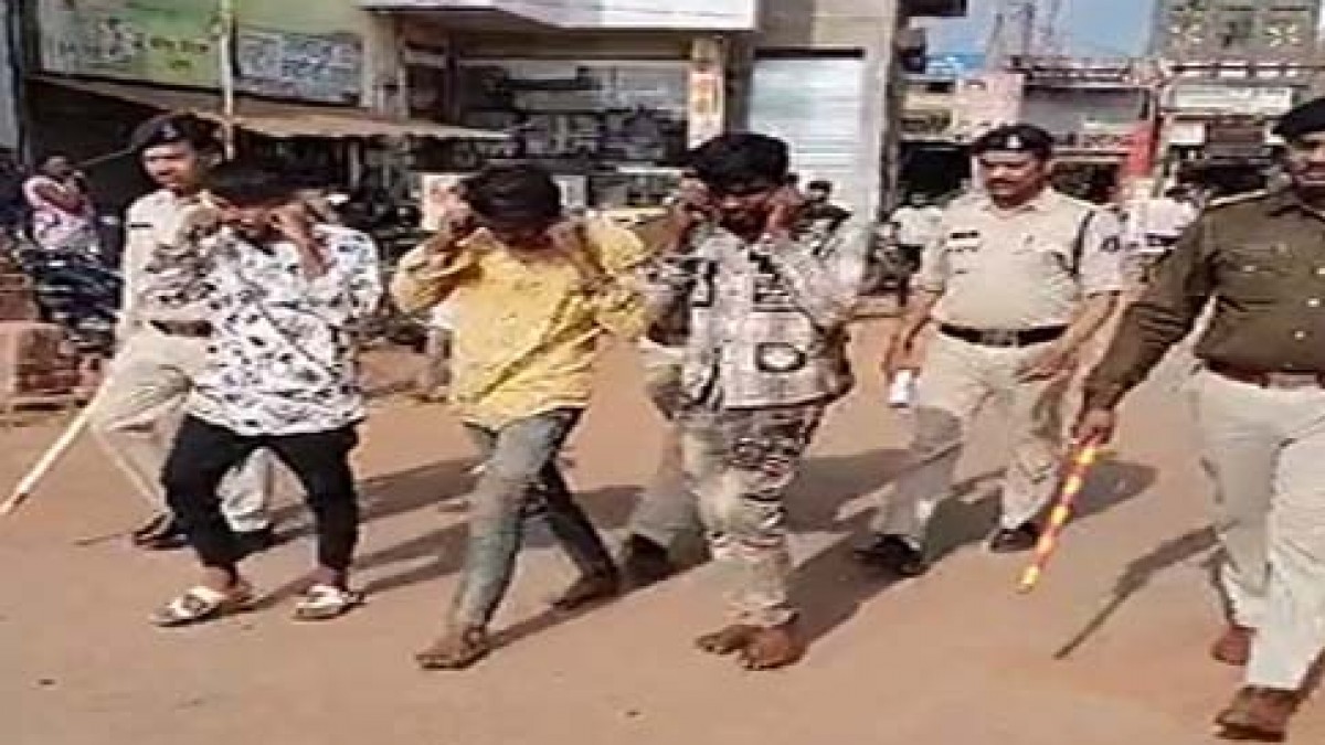 चाकूबाजों का निकाला जुलूस : सरेबाजार छेड़छाड़ से रोकने पर चलाया चाकू, 3 बदमाशों को पुलिस ने पकड़ा