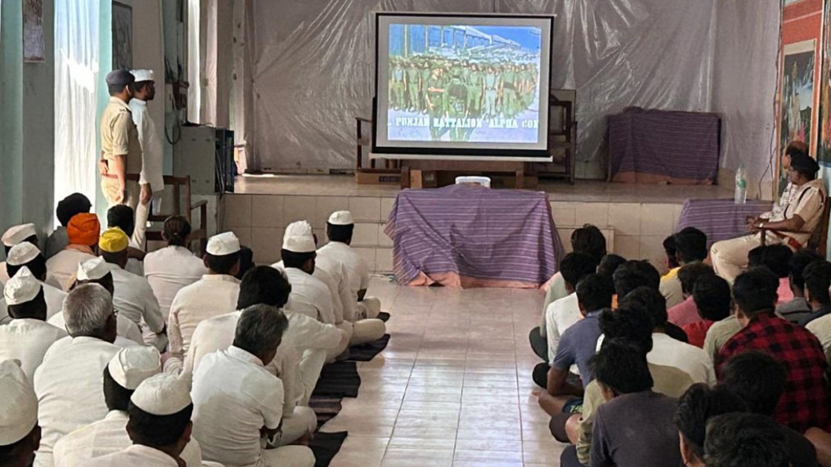 सेंट्रल जेल रायपुर के बंदियों में नैतिक मूल्य विकसित करने देशभतक्ति के साथ प्रेरणादायी मूवी दिखाने का नया प्रयोग किया जा रहा है।