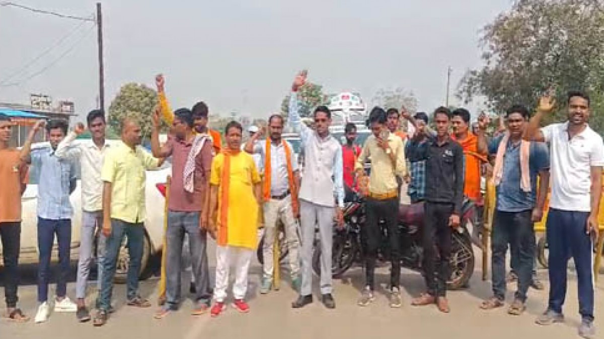 हिंदूवादी संगठनों ने रायपुर-जबलपुर एन एच 30 पर चक्का-जाम कर लालपुर हत्याकांड का विरोध प्रदर्शन किया