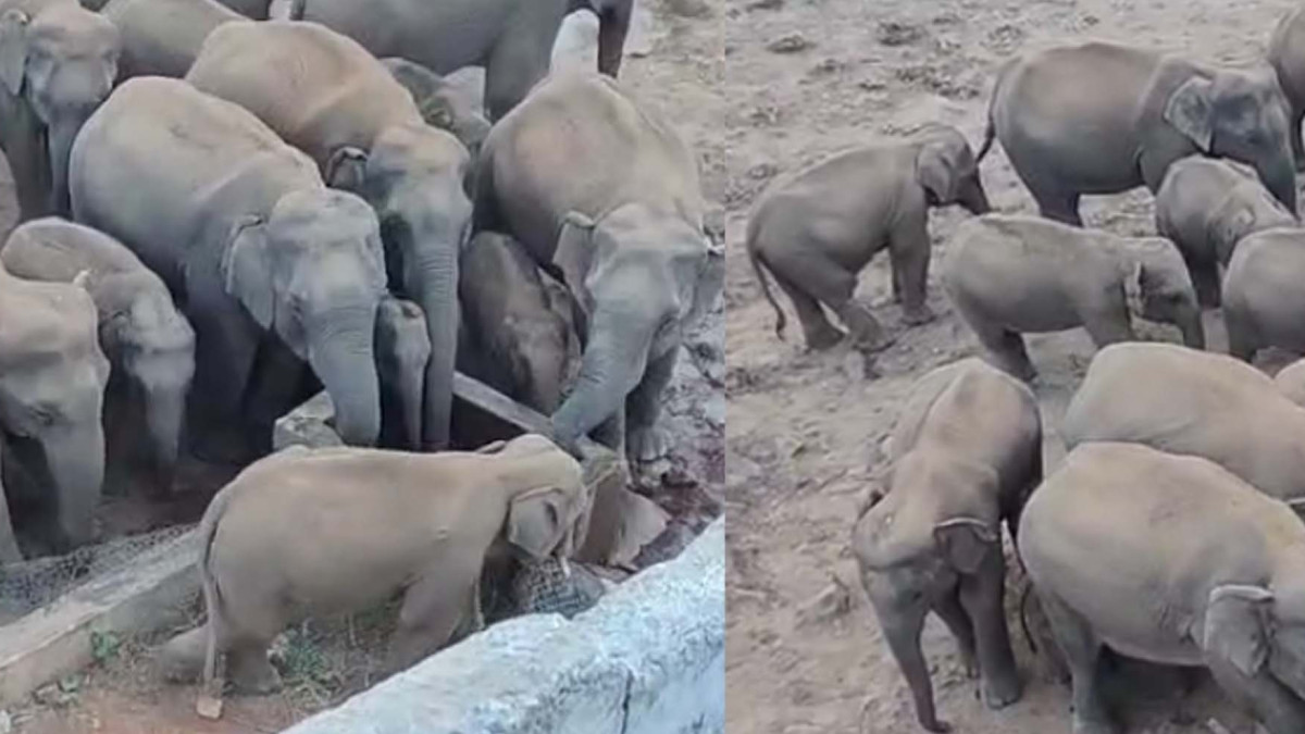 हाथियों का एक झुंड तालाब में नहाता दिख रहा है। झुंड में से एक बड़ा हाथी सिर नीचे और पैर ऊपर करके नहाता दिख रहा है। वहीं दूसरे वीडियो में एक हाथी का बच्चा पानी की टंकी के पास पहुंचा और सूंढ़ से पानी पीने के साथ खुद को ठंडा करता नजर आता है। फिलहाल पर्यटकों की भीड़ से जानवरों को बचाने के लिए बरमकेला क्षेत्र को आम लोगों के लिए बंद किया गया है।