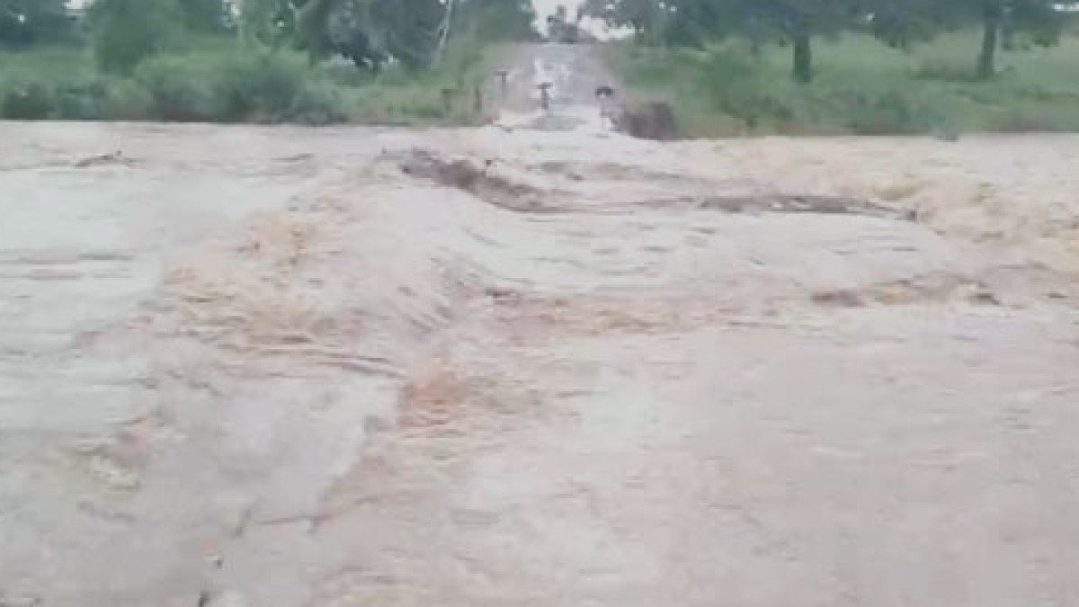 बड़गांव माड़िन नदी का जलस्तर बढ़ने से पुल के तीन फीट ऊपर से पानी बह रहा है। इससे आवागमन पूरी तरह से बाधित हो गई है। पुल के दोनों किनारों पर वाहनों की लंबी कतार लग गई है। वहीं बाढ़ आपदा प्रबंधन की टीम भी मौके पर पहुंच गई है और लोगों को पुल पार न करने की समझाइश दे रही है।